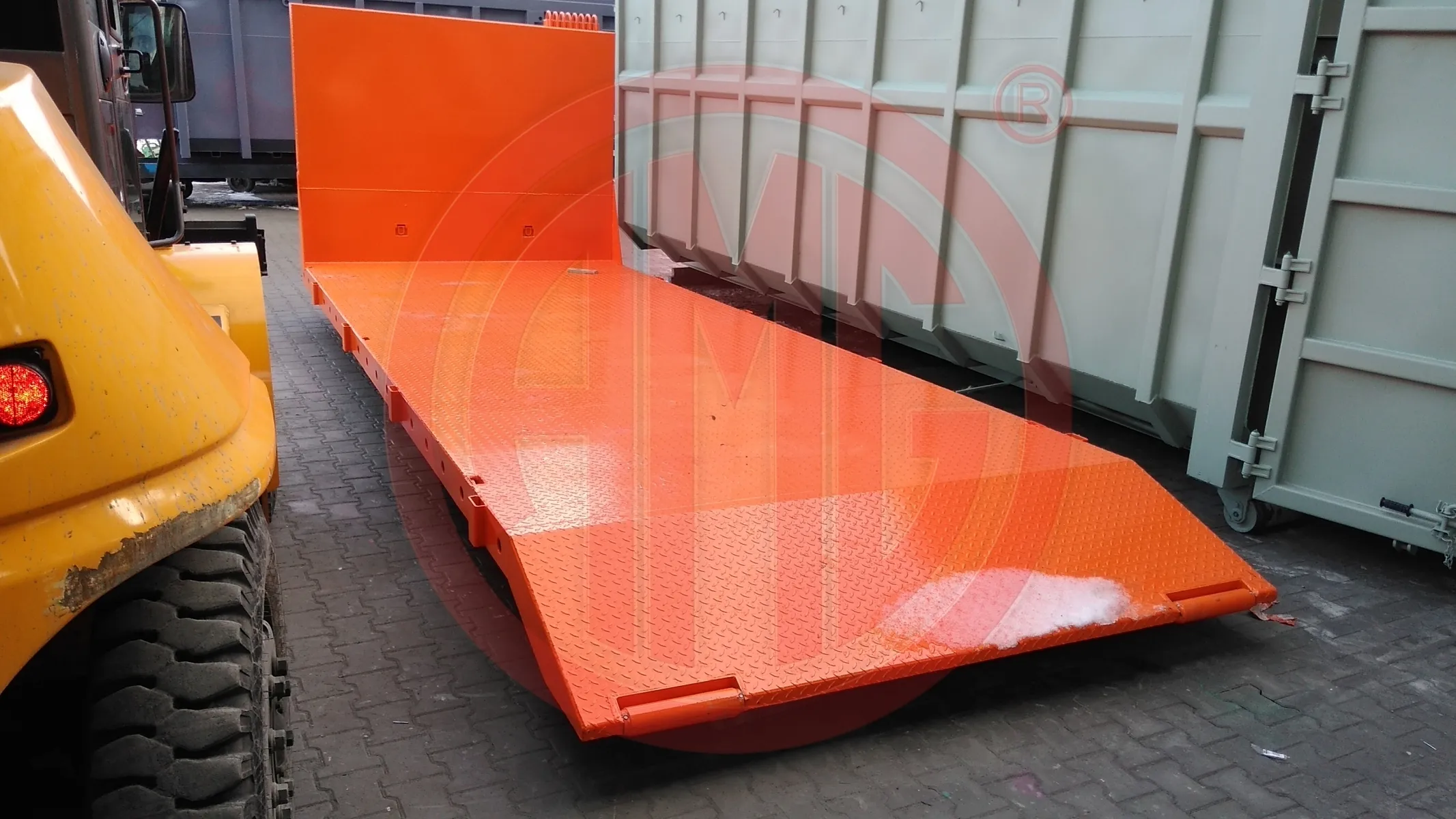 Lieferung frei Haus.Abrollplattform 6,5 m mit Auffahrschräge