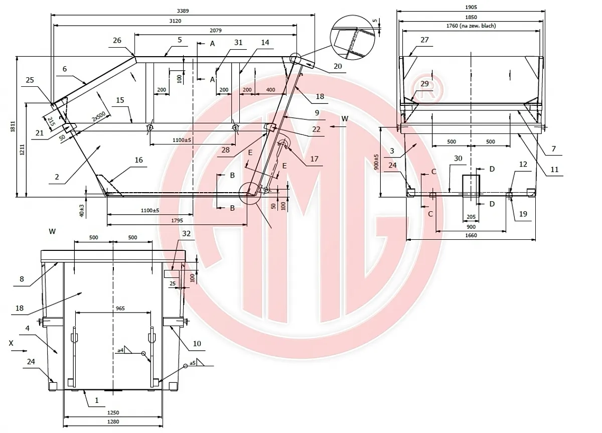 - und mit Aufnahme für Absetzkipper, einfaches Kipplager (eingelassen)